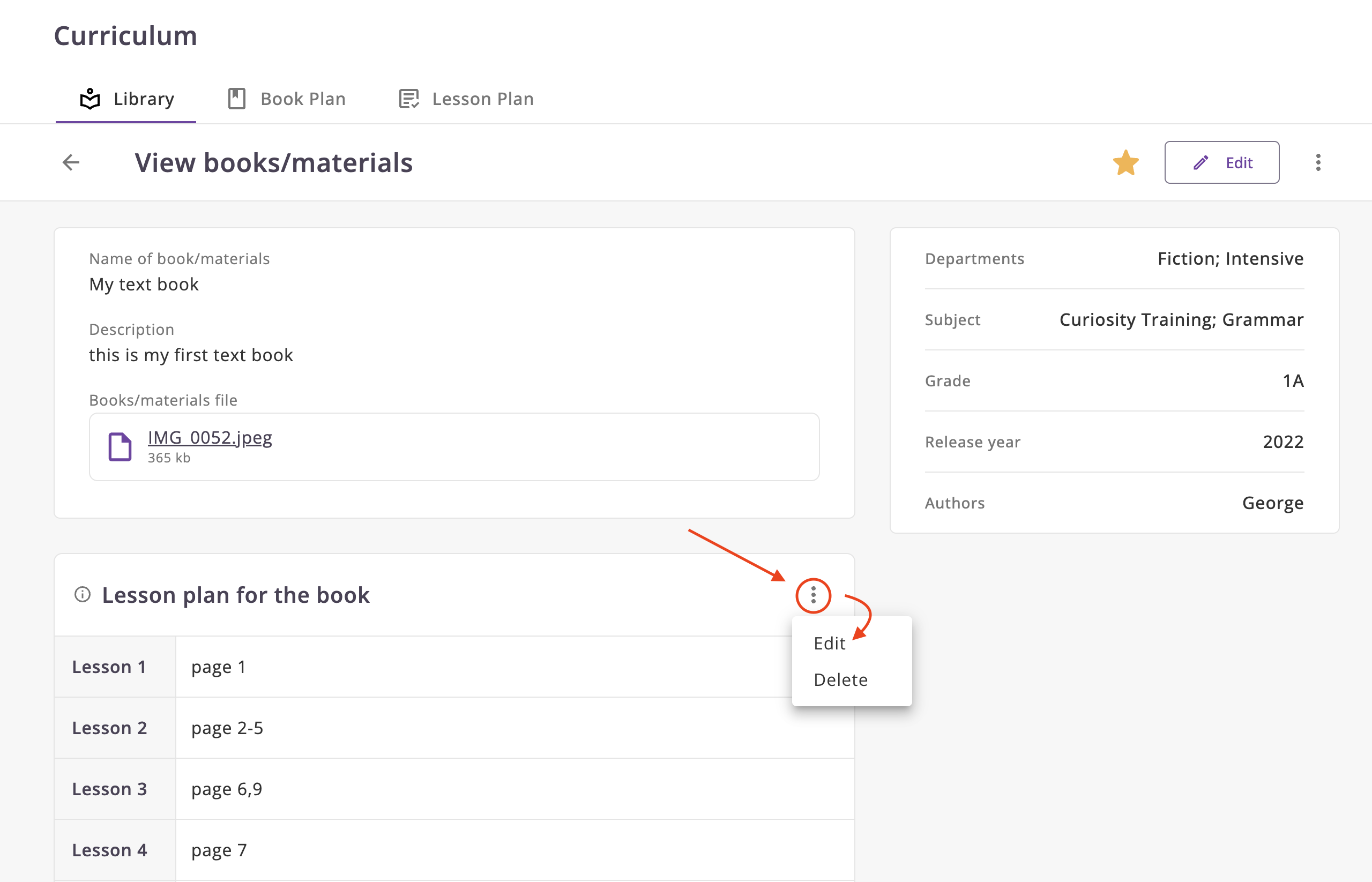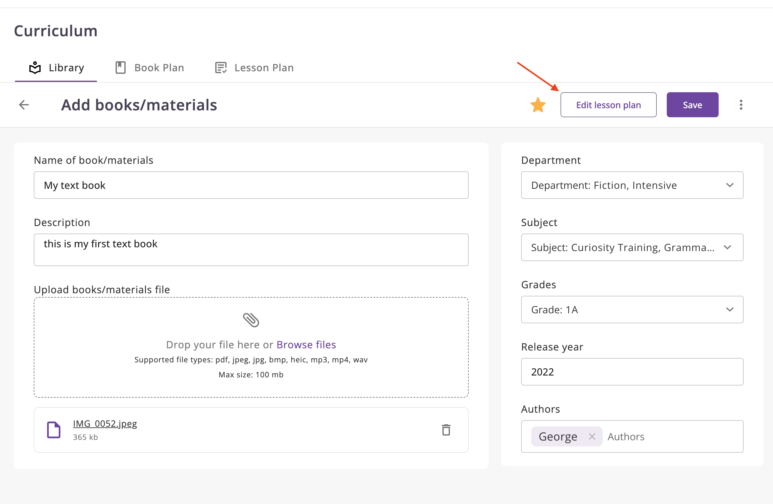 - After saving the material, the system will offer to "Create Lesson Plan" immediately. You can also create the lesson plan later.