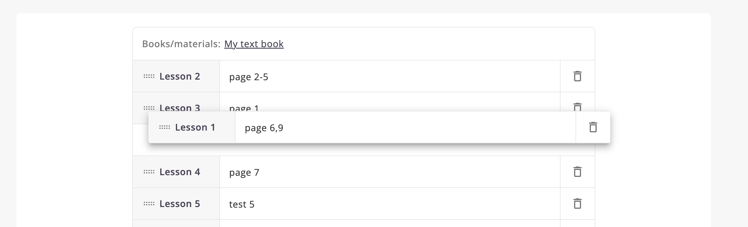 You can change the order of the lessons by dragging.
